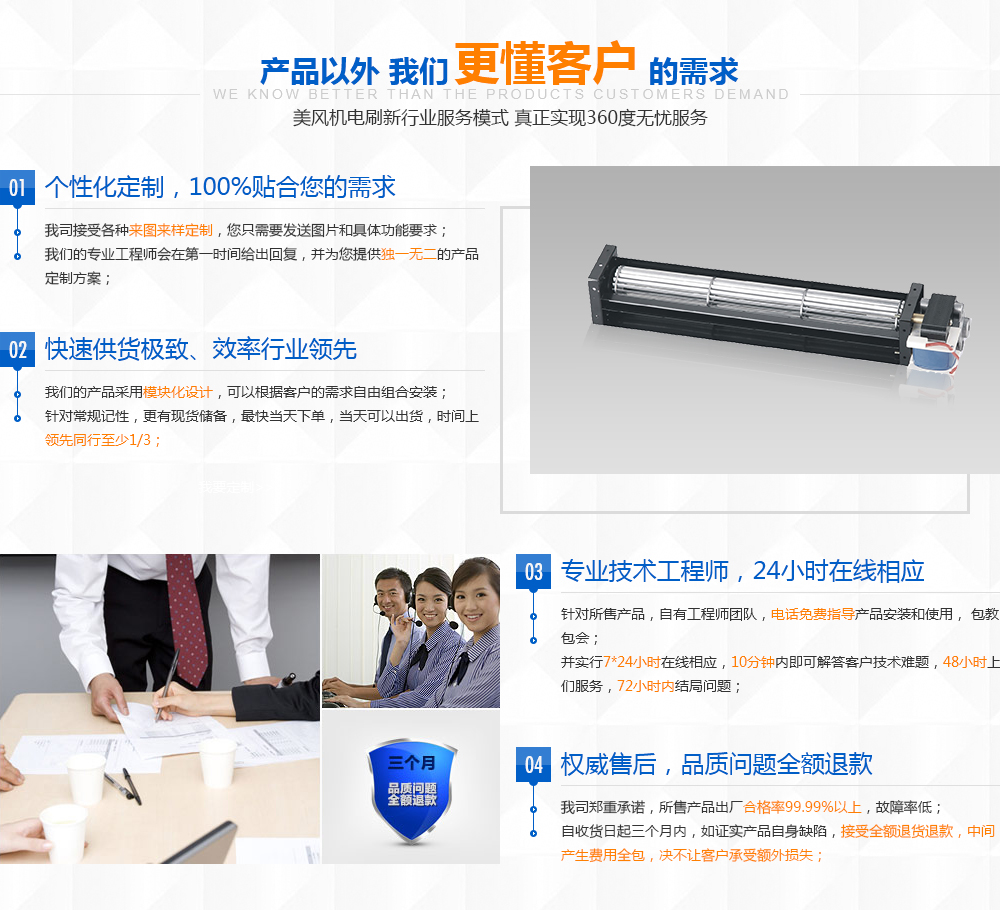 產品特點:使用鋁合金材質,具有重量輕、風量大、噪音低、高強度、低震動、耐溫佳、壽命長的優點